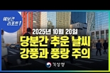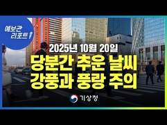 [데일리NGO뉴스 = 동영상. 기상.날씨/ 기상청 ] 안녕하세요, 기상청 예보관리포트 예보분석관 구민철입니다. 오늘의 날씨 키워드는 기온과 강풍 그리고 강수입니다. 그럼 자세히 알아보겠습니다. 먼저, 아침 기상 실황입니다. 현재, 우리나라는 중국 북부지방에서 확장하는 고기압의 영향을 받아 동해안을 제외한 전국이 대체로 맑은 날씨를 보이고 있는데요. 어제 오후부터 북쪽의 찬 공기가 유입되면서 기온이 급격히 떨어져 일최저기온이 중부지방은 5℃ 안팎, 남부지방은 10℃ 안팎으로 어제보다 5~10℃가량 낮게 나타났습니다. 당분간 북쪽의 찬 공기가 유입되면서 내일 아침기온은 1~14℃, 모레 아침기온은 3~14℃로 낮겠는데요. 기온이 낮은 가운데 바람도 강하게 불어 체감온도는 더욱 낮겠으며, 급격한 기온 변화로 인해 면역력이 저하될 수 있으니 건강관리에 유의하기 바랍니다. 또한, 모레까지 일부 경기내륙과 강원내륙.산지, 충청권내륙, 전북동부 높은 산지에 서리가 내리는 곳이 있겠고, 일부 경기북부내륙과 강원북부내륙, 강원산지에는 얼음이 어는 곳도 있겠으니, 농작물 관리에 유의하기 바랍니다. 다음은 강풍과 풍랑 전망입니다. 중국 북부지방의 찬 대륙고기압이 서해상으로 확장하면서 등압선 간격이 조밀해져 당분간 해안과 제주도를 중심으로 바람이 강하게 불겠습니다. 특히, 현재 서해안에는 바람이 매우 강하게 불어 강풍 특보가 발효 중이니 시설물 관리와 안전사고에 유의하기 바랍니다. 바람이 강하게 불면서 해상 상황도 좋지 않겠습니다. 현재 대부분 해상에 풍랑특보가 발효 중인 가운데, 당분간 바람이 매우 강하게 불고 물결이 최대 4m로 매우 높게 일겠습니다. 특히, 오늘 제주도남쪽바깥먼바다와 동해중부먼바다, 동해남부북쪽먼바다에는 물결이 최대 5m 이상으로 매우 높게 일겠으니 항해 및 조업하는 선박은 각별히 주의하기 바랍니다. 이어서 강수 전망에 대해 알아보겠습니다. 당분간 동해안은 중국 북동지방에서 동해북부해상으로 이동하는 고기압 가장자리에 들면서 동풍이 강하게 불겠는데요. 이 동풍이 태백산맥을 타고 상승하면서 강원영동과 경북북부동해안에 비가 내리고 있습니다. 오늘과 내일 강수영역을 보면, 이 비구름대의 영향으로 20일인 오늘 강원영동과 경북동해안.경북북동산지에 비가 내리고, 오후부터 경남권동부에 비가 내리는 곳이 있겠구요. 강원영동은 내일 오전까지, 경북동해안과 경남권동부는 늦은 밤까지 이어지겠으나, 소강상태를 보이는 곳이 있겠습니다. 오늘과 내일 예상 강수량은 그림을 통해 살펴보겠습니다. 한편, 찬 공기가 남하하면서 오늘 오전까지 강원북부의 해발고도 1,200m 이상의 높은 산지에는 비가 눈으로 바뀌어 내리면서 조금 쌓이는 곳이 있겠으니, 산행 시 안전사고에 유의하기 바랍니다. 지금까지 기상청 예보관 리포트였습니다. [ 기상청 예보분석관 구민철] seo@dailyngonews.com