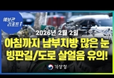 【날씨/ 전라.경상 대설특보】오늘 아침까지 남부지방 중심 많은 눈 ...빙판길. 도로 살얼음 유의 ( 26년 2월 2일 05시 기준)