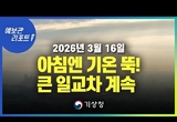 아침엔 기온 뚝, 일교차 큰 날씨 이어져, 아침까지 내륙 안개 유의 (26년 3월 16일 05시 기준)