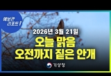 오늘 맑고, 낮과 밤 기온차 커... 오전까지 짙은 안개 ( 26년 3월 21일 05시 기준)