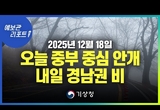 오늘 오전까지 경기동부와 강원내륙, 충북중.북부 중심 짙은 안개, 내일 경남권해안 중심, 전국 대부분 지역 비 (25년 12월 18일 05시 기준)