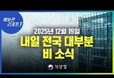 낮과 밤 기온차 15℃ 이상... 내일 전국 대부분 지역 비 ( 25년 12월 19일 05시 기준)