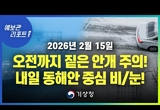 오늘 오전까지 안개 자욱, 내일 동해안 중심 비.눈 내려 (26년 2월 15일 05시 기준)