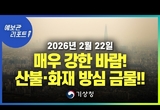 매우 강한 바람.산불, 화재 주의... 전국 비 조금, 황사 유의 (26년 2월 22일 05시 기준)