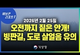 오전까지 내륙 중심 짙은 안개, 빙판길과 도로 살얼음 유의 ( 26년 2월 25일 05시 기준)