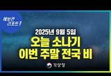 [ 기상 ]충청권과 남부지방 중심 소나기, 이번 주말 전국 강한 비, 무더위 유의. ( 25년 9월 5일 )