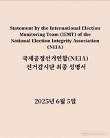 [속보] 韓 입국 '국제공정선거연합(National Election Integrity Association) 선거감시단' 성명서(6월 1일) 발표