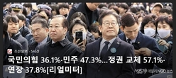 조선일보,'국민의힘 36.1%·민주 47.3%…정권 교체 57.1%·연장 37.8%' [리얼미터]…