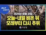 오늘~내일 중부지방과 전라권 중심 비, 모레 다시 추위 (25년 10월 31일 05시 기준)