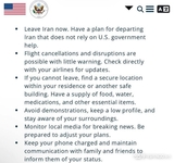 [ 긴급 속보 ] 美 정부,이란 체류 자국민 즉시출국 권고 ' 항공편 중단. 돌발 상황 경고'