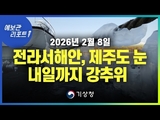 【 날씨=눈. 강추위 】 찬 북서풍에 전라서해안.제주도 많은 눈과 전국 강추위 ( 26년 2월 8일…