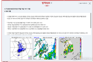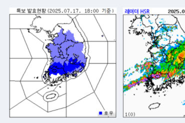 [기상청 속보] 17일 18시 현재 중부지방과 전라권, 경상권 호우특보 발효 중
