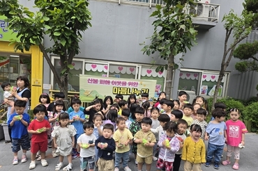 인천시 남동구 해오름 키즈. 숲 어린이집, '재해 돕기 저금통' 20일 간석4동에 전달한다.