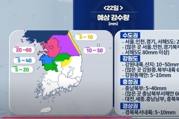 [오늘날씨] 중부지방 중심 장맛비, 당분간 무더워요. 7월 22일 5시 기준