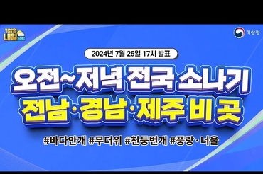 [내일날씨] 오전에서 저녁 사이 곳곳에 소나기가 내리겠고, 전남과 경남, 제주는 비 소식 ( 7월 25일 17시 기준)