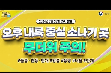 [오늘날씨] 오후 내륙 중심 소나기 곳, 무더위 주의! 7월 28일 5시 기준