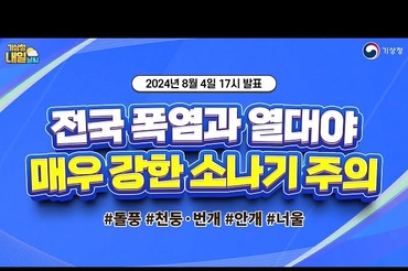 [내일날씨] 전국 폭염과 열대야, 강한 소나기 주의. 8월 4일 17시 기준