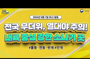 [오늘날씨] 전국 무더위, 열대야 주의! 내륙 중심 강한 소나기 곳.( 8월 7일 05시 기준)