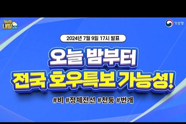 [내일날씨] 9일 밤부터 전국 대부분 지역 호우특보