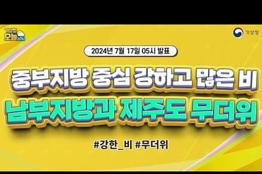 [오늘날씨] 중부지방 중심 강하고 많은 비, 남부지방과 제주도 무더위