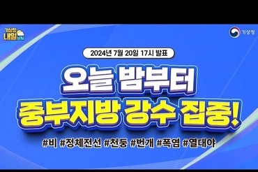 오늘 밤부터 중부지방 강수 집중! 7월 20일 17시 기준