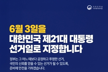 정부, 21대 대통령 선거일 6월 3일 확정 발표 ... 임시 공휴일 지정