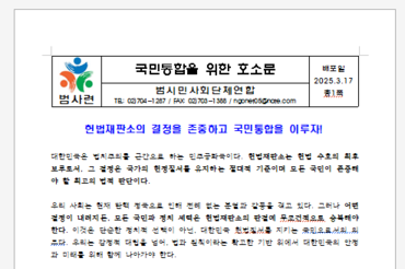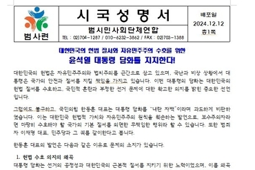 범사련, 국민통합을 위한 호소문 발표 ' 이재명과 민주당 탄핵소추 엄중책임 있다'