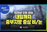 내일까지 중부지방 중심 비또는 눈.... 빙판길 도로 살얼음 유의 (25년 12월 28일 05시 기준)