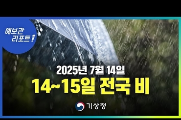14~15일 전국 비, 특히 강원영동 중심 많은 비 유의. ( 25년 7월 14일 5시 기준)