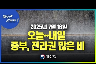 전국 비, 중부와 전라권 중심 밤부터 매우 강한 비 주의! ( 25년 7월 16일 05시 기준)