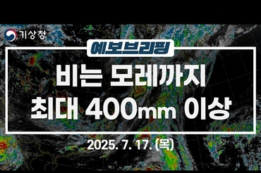 잠시 그쳐도 방심 금물. 밤에 더 온다. 전국 비. 모레 남부 400mm 이상. (7월 17일 기상청 예보브리핑)