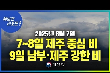 오늘~내일 제주 중심 비. 동풍 영향 영동지역 비/소나기, 모레 남부·제주 강한 비. ( 25년 8월 7일 5시)