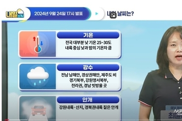 [내일날씨] 낮과 밤의 기온차 크고, 남해안, 제주도 중심 비. (9월 24 일 17시 기준)