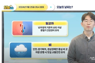 [오늘날씨] 낮과 밤의 기온차 큼, 인천.경기북부, 경상권해안 중심 비 ( 9월 25일 5시 기준)