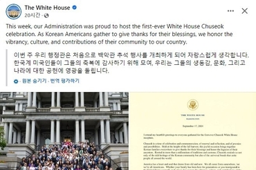 美 백악관 처음으로 한국계 미국인 백악관 추석 행사 개최