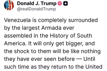 Jean Cummings, '트럼프 대통령, 베네수엘라 전면 봉쇄 명령'