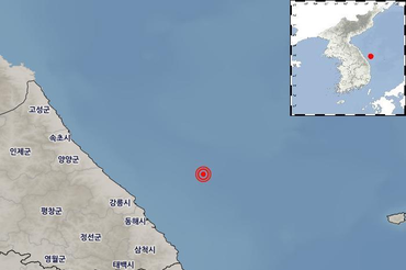 기상청 1일 13시 46분 21초 강원 동해시 해역 강도 2.4규모 지진 발생 발표