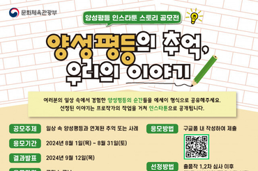 문화체육관광부, 이달 말까지 ‘양성평등 스토리 공모전’ 개최
