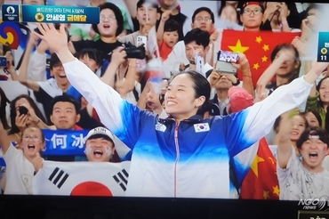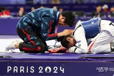 7일 금메달 확정 짓자 한국인 최영석 감독에게 달려가 무릎 꿇고 엎드려 큰절