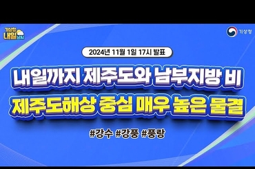 [내일날씨] 내일까지 제주도와 남부지방 비, 바람 매우 강. (11월 1일 17시 기준)