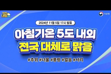 [내일날씨] 아침기온 5도 내외, 전국 대체로 맑음. (11월 5일 17시 기준)