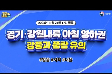 경기내륙과 강원내륙·산지 아침 영하권, 서해안 중심 강풍, 서해와 동해상 풍랑. (11월 21일 17시 기준)