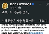 Jean Cummings, ' 트럼프 美 대통령 이란내 美시민 철수, 이란 국민 계속 시위 당부' 발표 전해