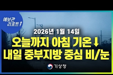 오늘까지 아침 기온 낮아 춥고, 내일 중부지방 중심 비.눈 ( 26년 1월 14일 05시 기준)