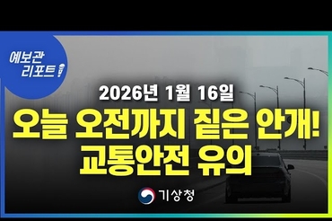오늘 오전까지 짙은 안개 끼는 곳 많고, 빙판길. 도로 살얼음 유의! (26년 1월 16일 05시 기준)