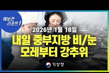 내일 중부지방 중심 비·눈, 모레부터 매우 추워져 ( 26년 1월 18일 05시 기준)