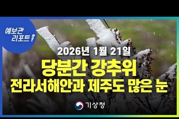 당분간 강추위 지속, 내일까지 전라서해안. 제주도 중심 많은 눈 ( 26년 1월 21일 05시 기준)
