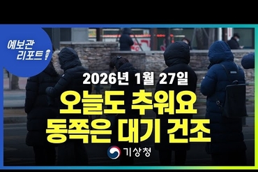 당분간 중부 중심 강추위, 수도권과 동쪽 지역 중심 대기 건조. ( 26년 1월 27일 05시 기준)