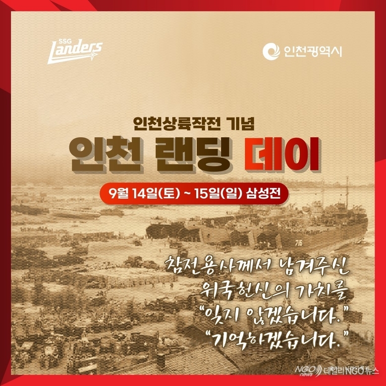 인천광역시 (시장 유정복) 는 9월 14일과 15일 이틀간 인천SSG랜더스필드에서 제74주년 인천상륙작전을 기념하는 ‘인천 랜딩 데이(INCHEON LANDING DAY)' 행사를 SSG랜더스와 함께 개최한다.