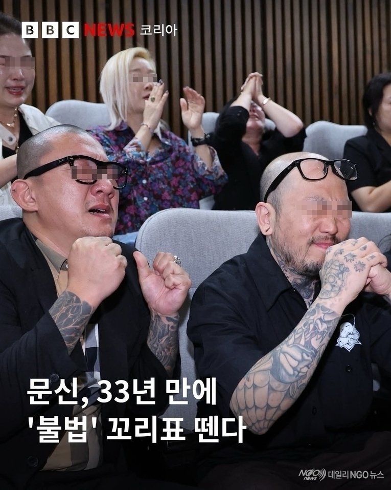 BBC뉴스 코리아 25일 '한국에서 오랜 시간 ‘불법’으로 치부됐던 문신(타투) 시술이 30여 년 만에 합법화됐다' 국회서 환호하는 타투이스트들 (사진=BBC뉴스 코리아 보도 캡쳐)